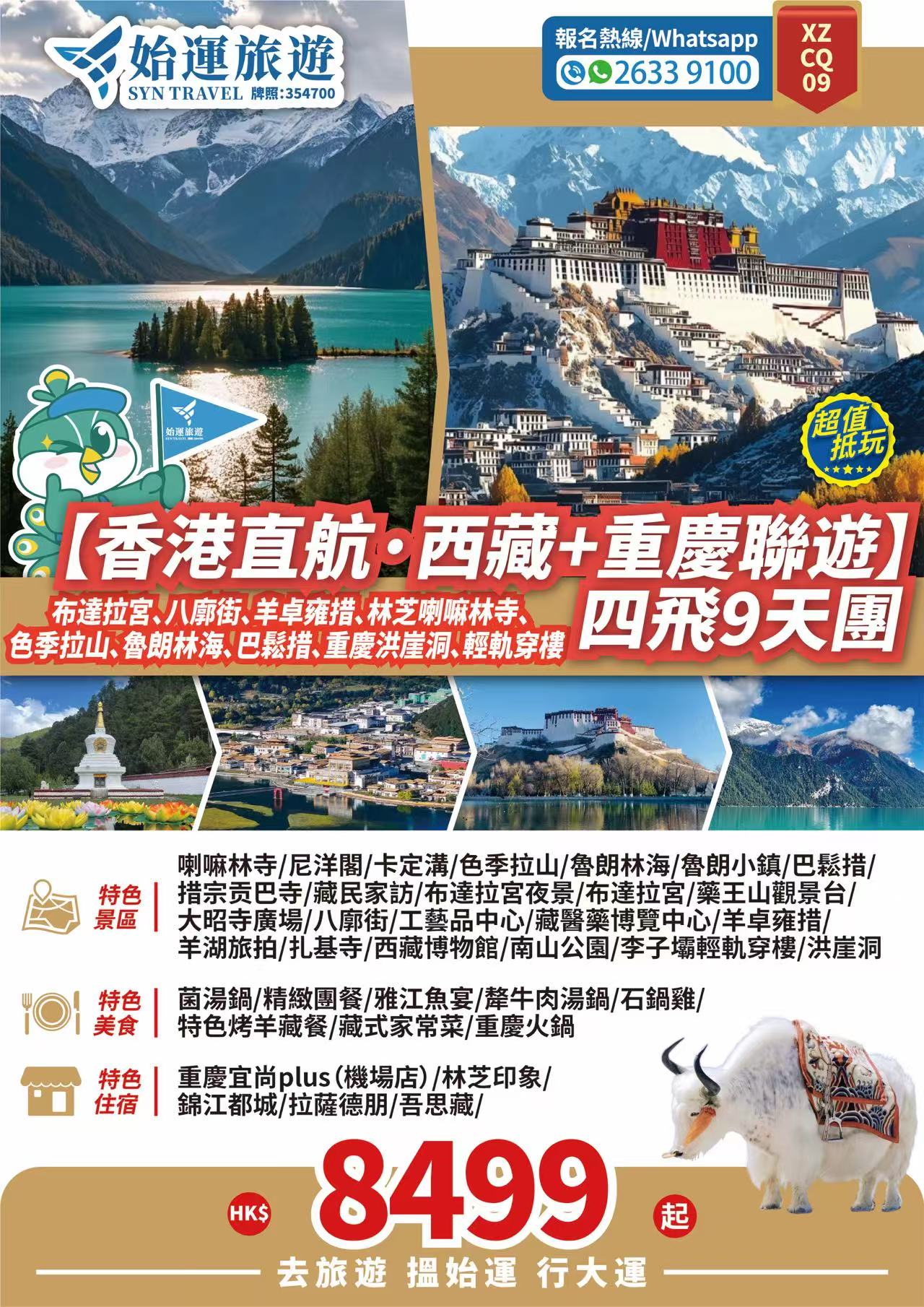 香港直航西藏重慶聯遊四飛 9 天團XZCQ09